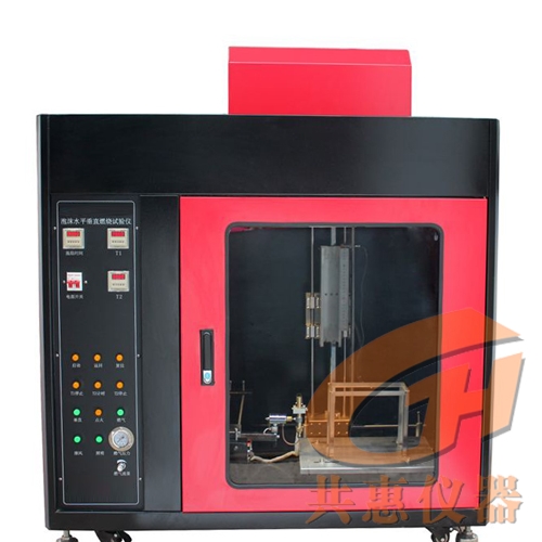 水平垂直燃燒儀規定了在實驗室內對水平和垂直方向放置的式樣用小火焰火源點燃后,測定式樣的燃燒速度,有焰燃燒和無焰燃燒時間。